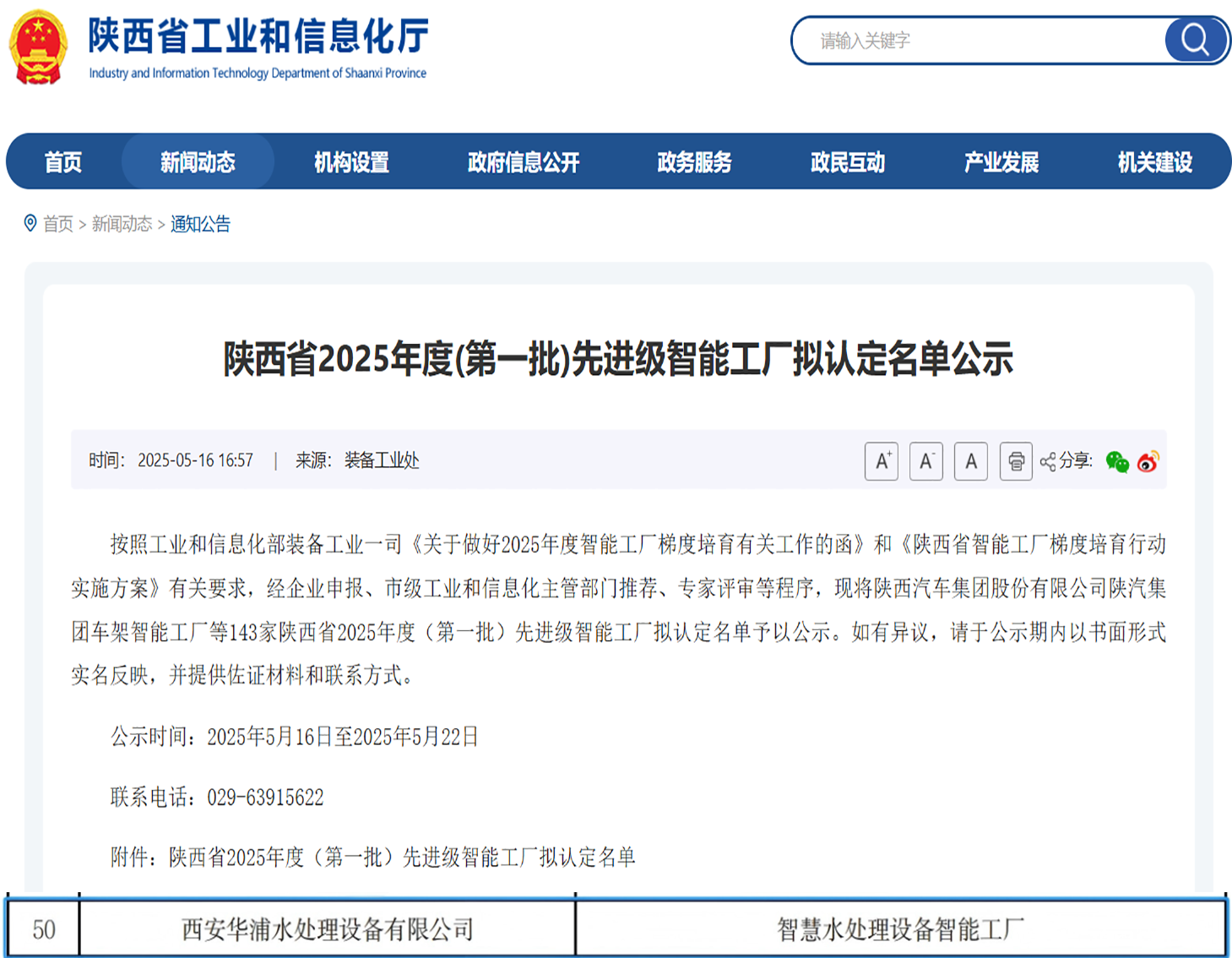 喜報|華浦環保認定為陜西省先進級智能工廠 引領數智化變革新征程